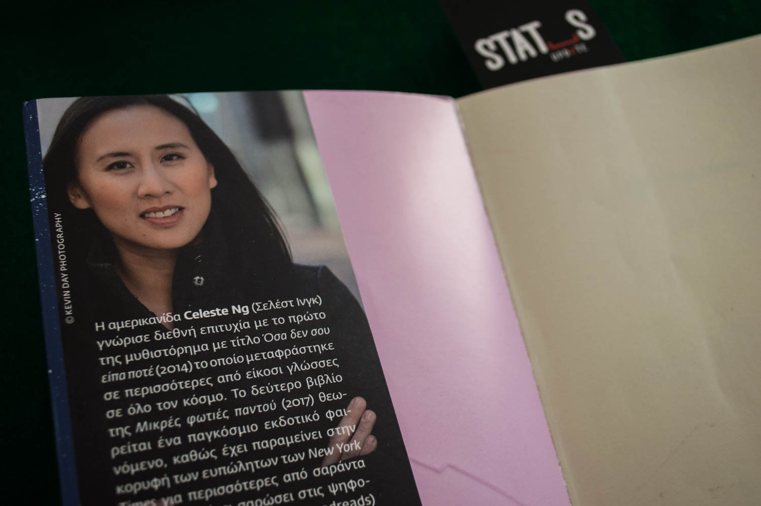Όταν κυκλοφόρησε το “Μικρές φωτιές παντού” και έμαθα, ότι πρόκειται για το 2ο βιβλίο Celeste Ng, μου δημιουργήθηκε το ενδιαφέρον να το διαβάσω και μόνο από το ποιά είναι η συγγραφέας του.